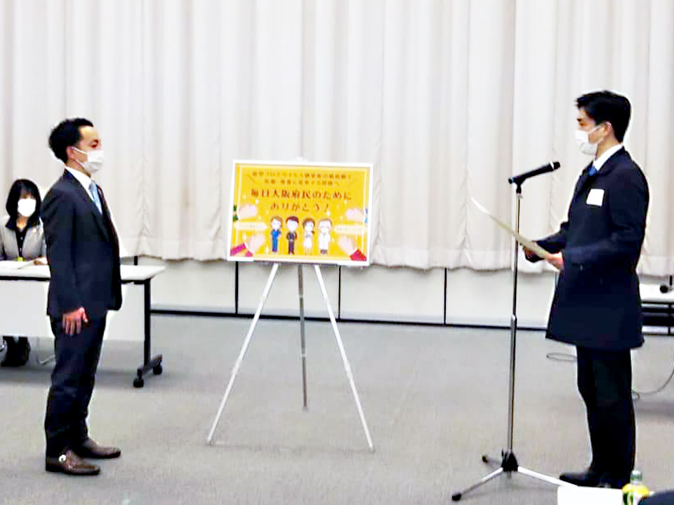 - 大阪府「新型コロナウイルス助け合い基金」への寄附に対する感謝状をいただきました。